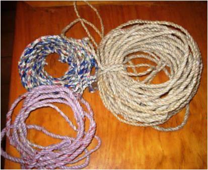 Strips of plastic bags can be wound in strong ropes for many domestic uses including tying up animals and making a washing line